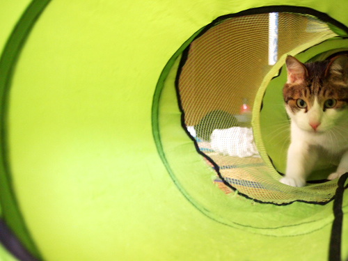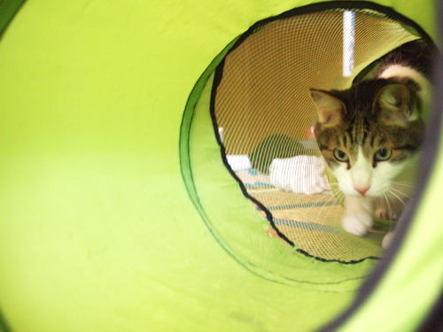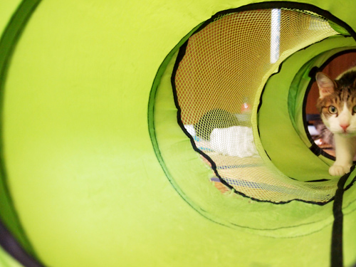 お気に入りのシャカシャカトンネルの下に入ると猛烈に興奮!